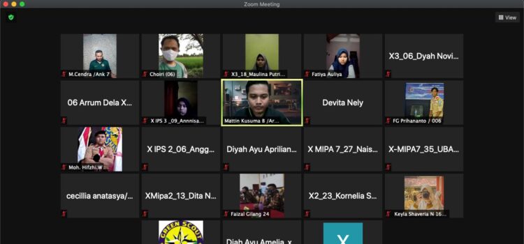 RAKASMADA -- Tamu Ambalan Raden Mas Soerjo dan Raden Ajeng Kartini gugusdepan 02 079 dan 02 080 pangkalan SMA Negeri 2 Ngawi mengikuti sharing session sejarah Green Scout Adventure (GSA), Sabtu (06/03/2021). Agenda yang dikemas secara daring oleh Dewan Ambalan...